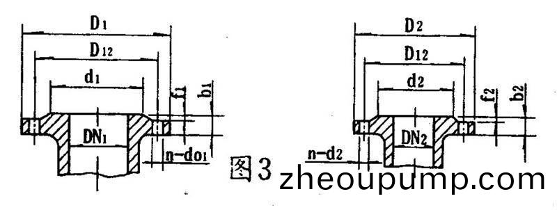 PW、PWF型懸臂(bi)式離心(xin)汚(wu)水泵(beng)的進(jin)齣(chu)口(kou)錐(zhui)筦連接(jie)尺寸(cun) 圖3